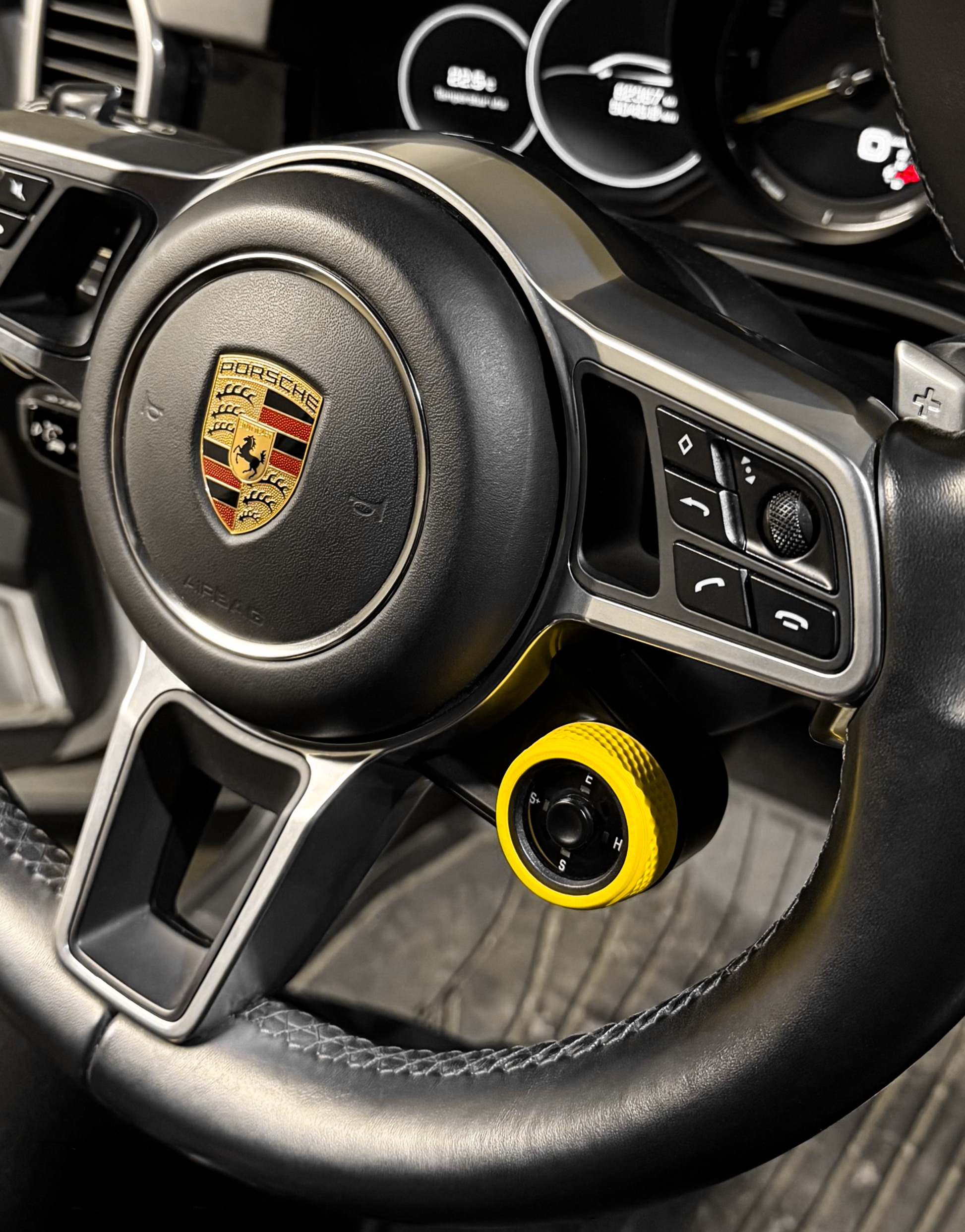 Enhance your driving experience with our custom-made Mode Dial Selector Cover, designed specifically for Porsche enthusiasts. Available in multiple colors to match your stitching, seat belts, or exterior paint, this cover adds a sleek and sporty touch to your interior.