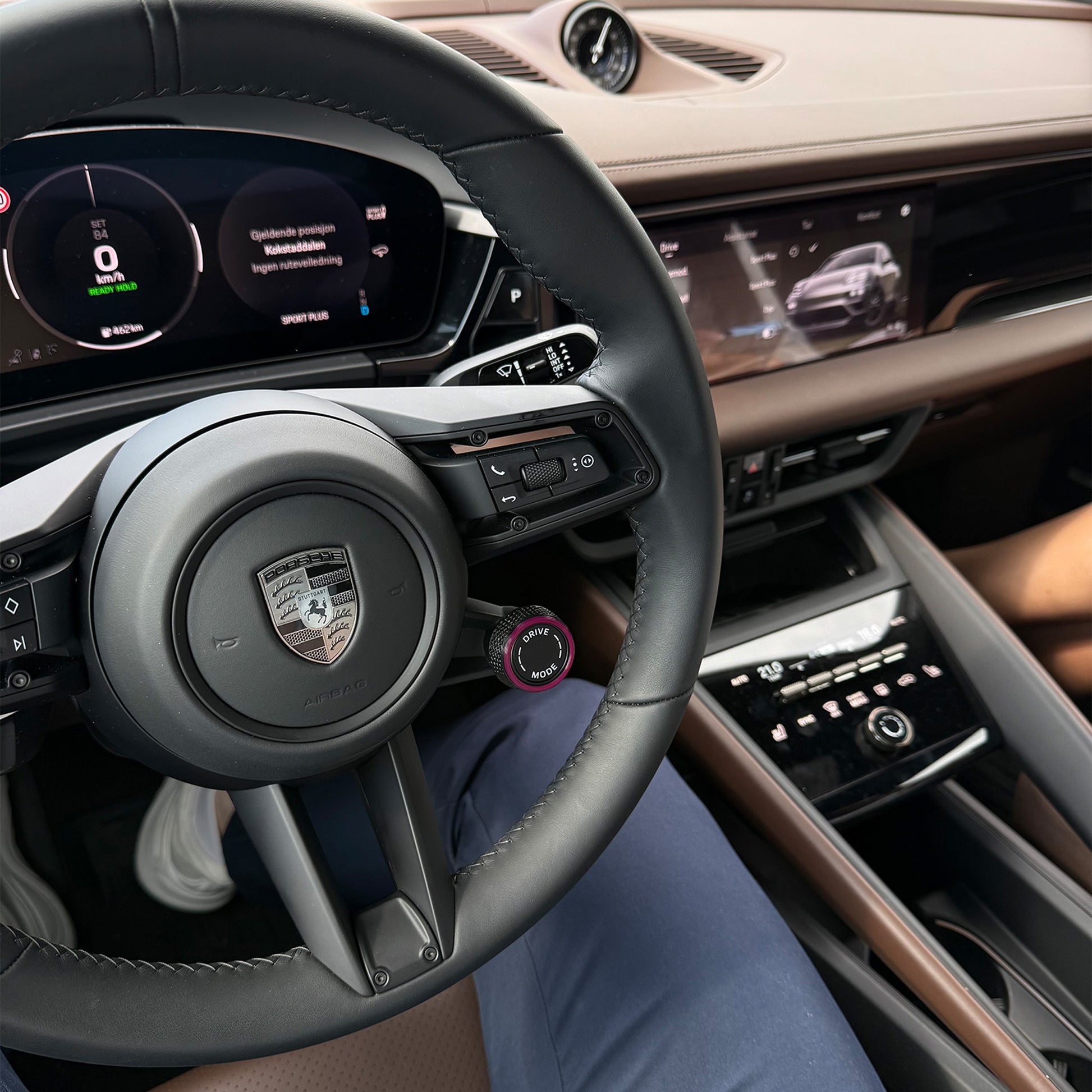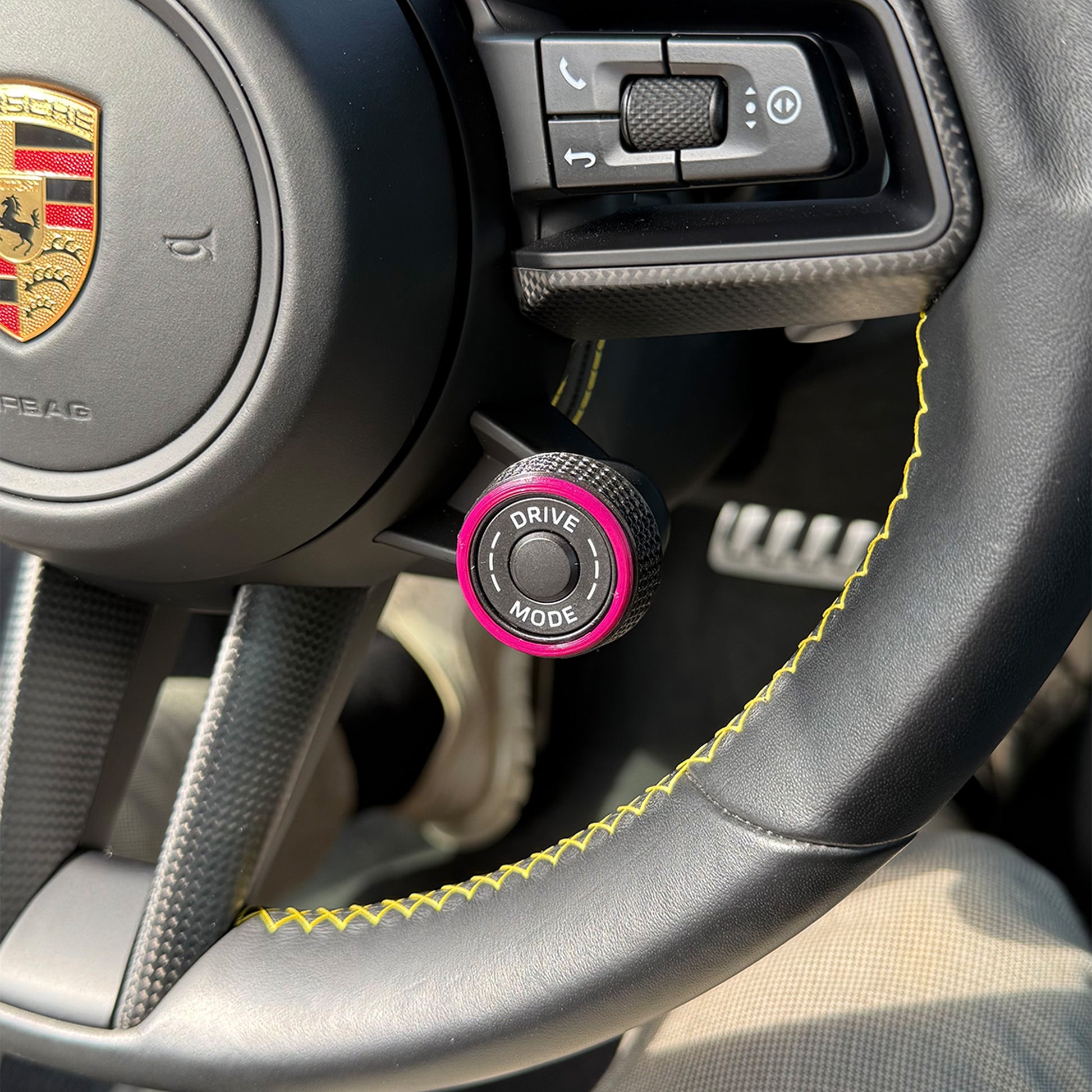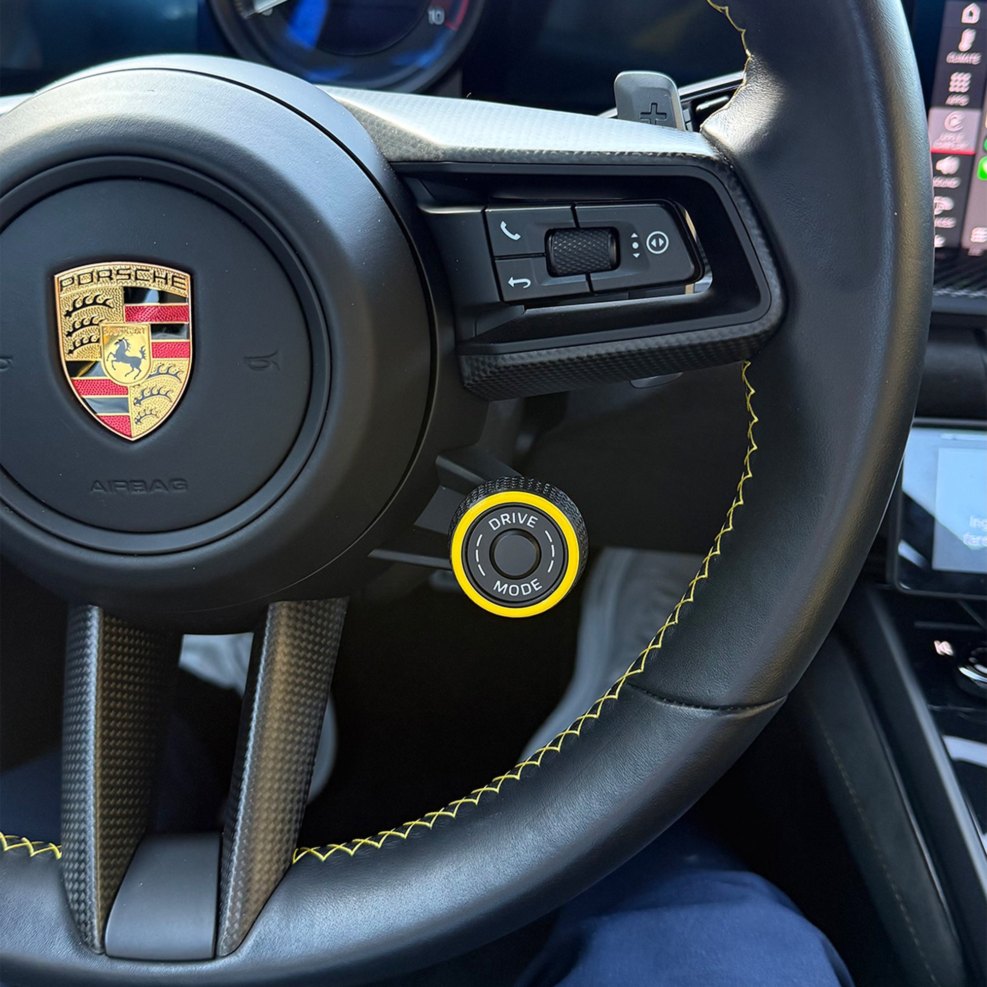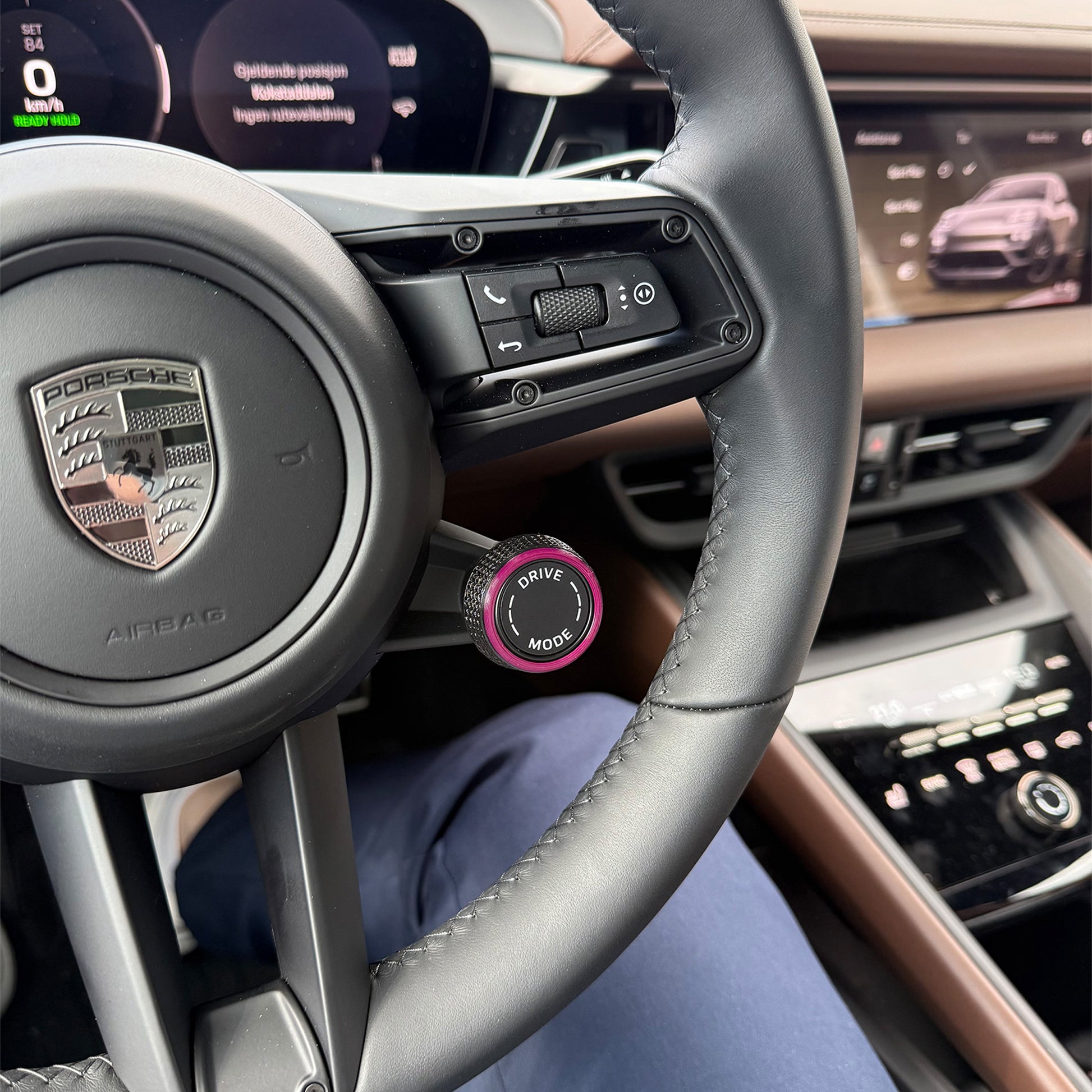 Enhance your driving experience with our custom-made Mode Dial Selector Cover, designed specifically for Porsche enthusiasts. Available in multiple colors to match your stitching, seat belts, or exterior paint, this cover adds a sleek and sporty touch to your interior.