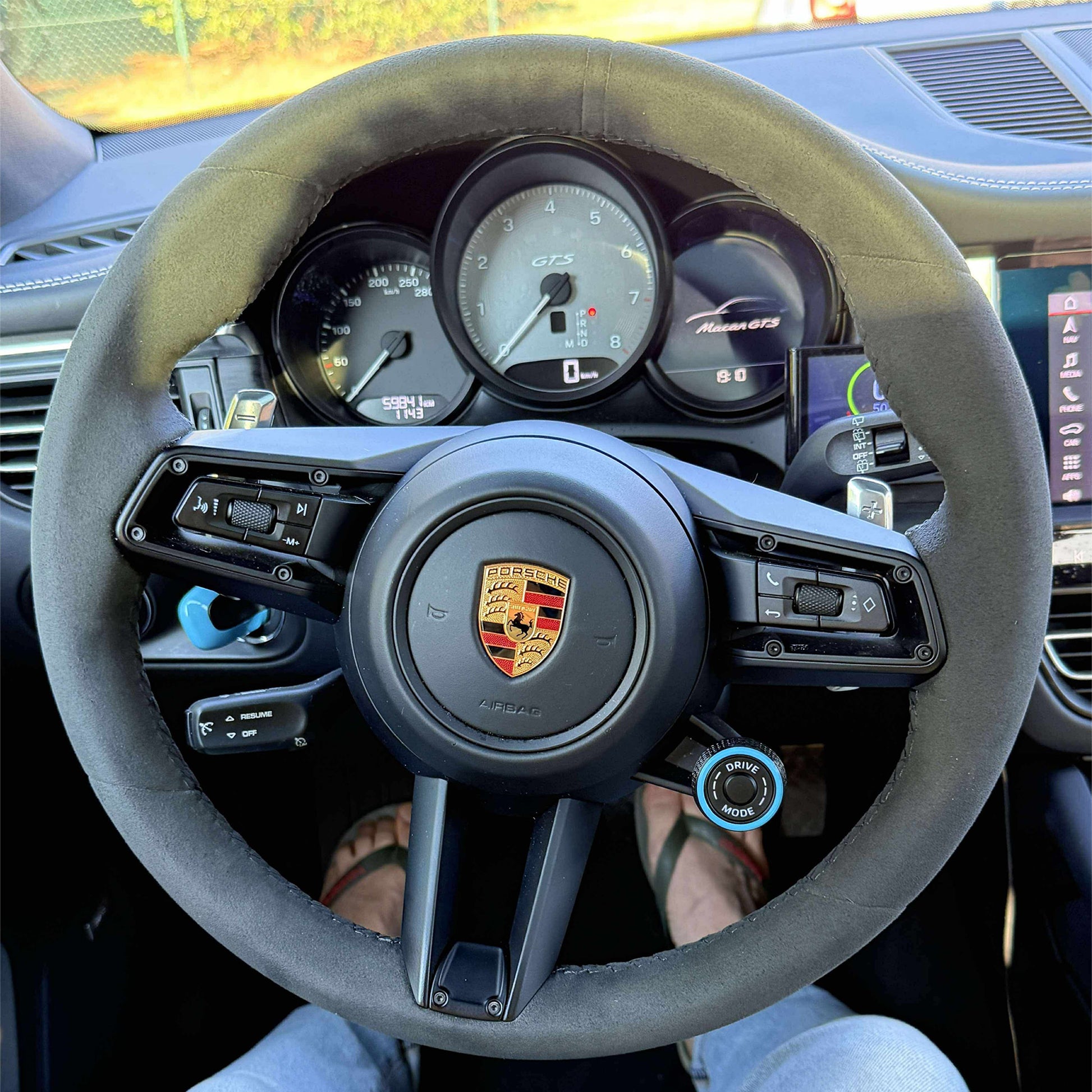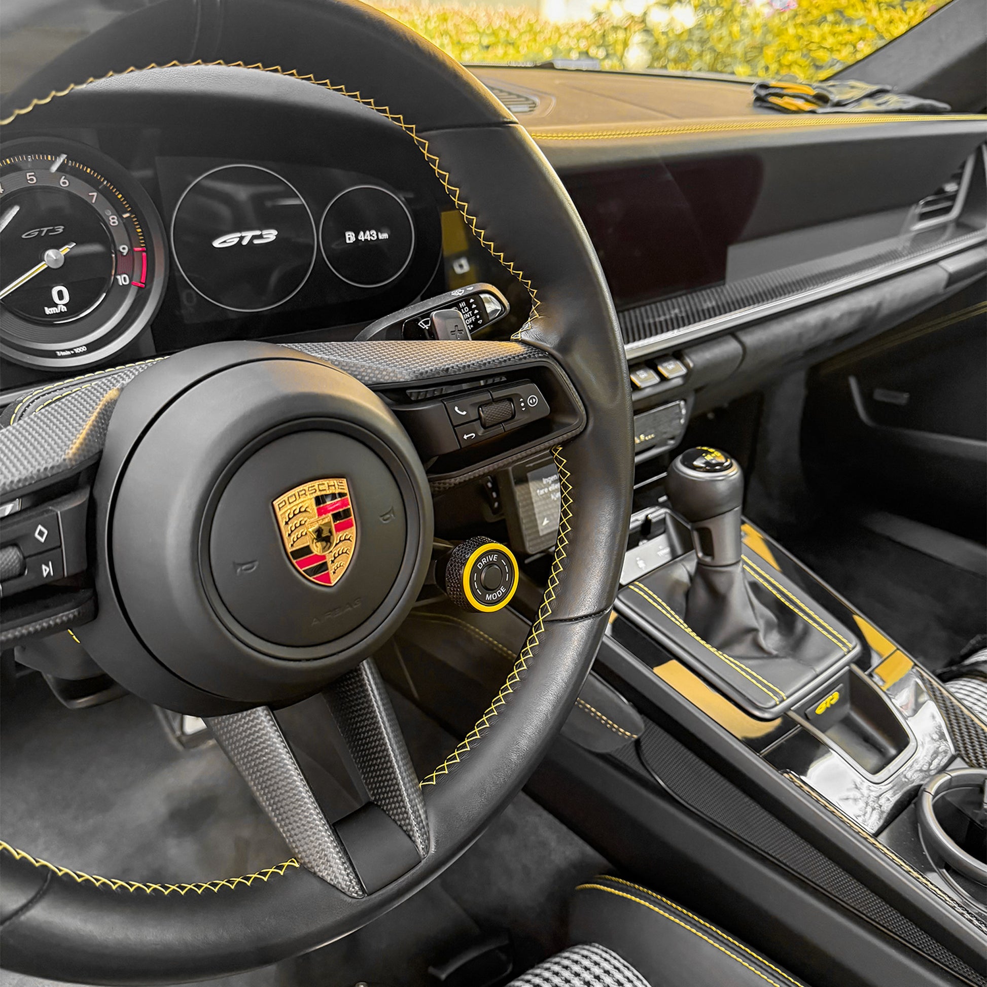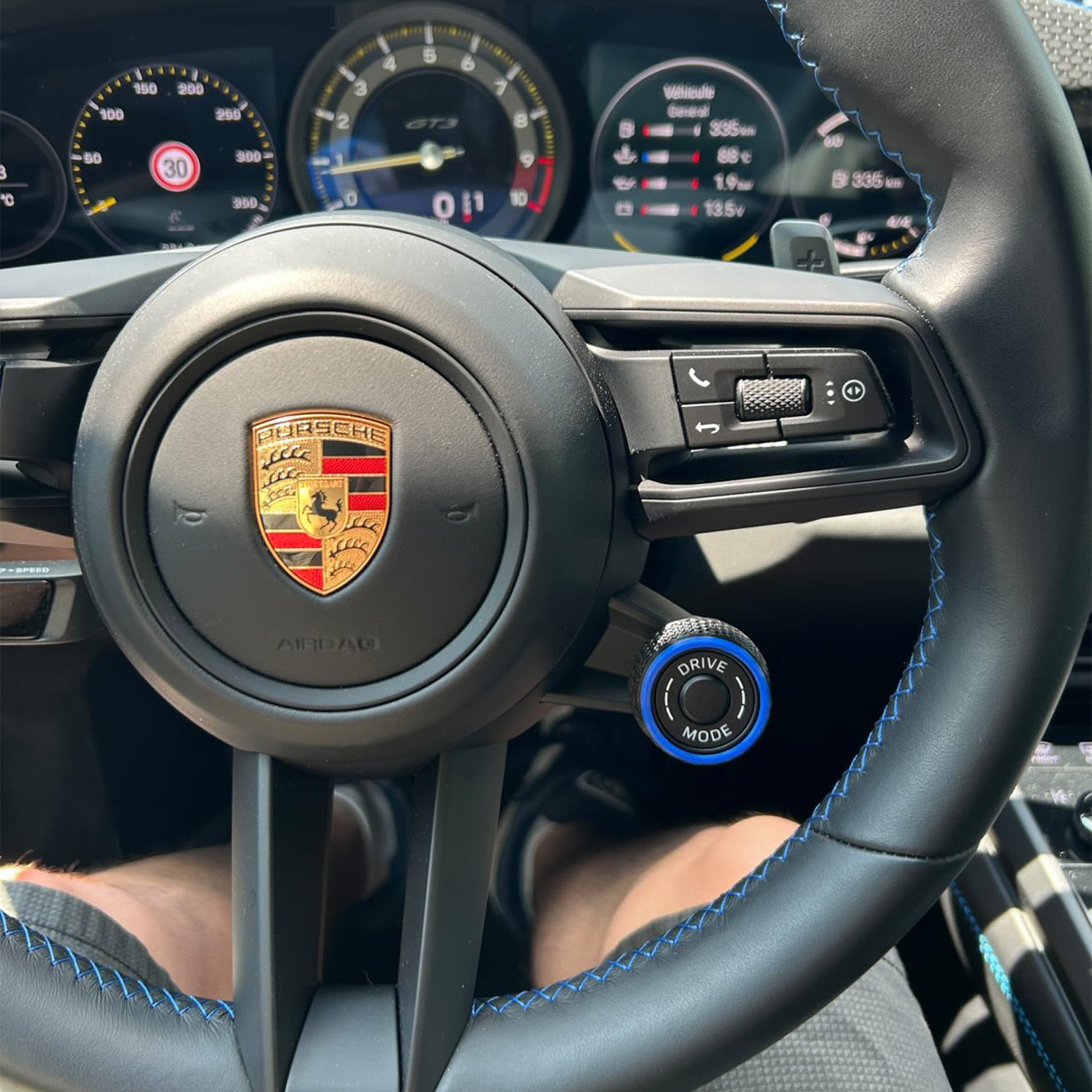 Enhance your driving experience with our custom-made Mode Dial Selector Cover, designed specifically for Porsche enthusiasts. Available in multiple colors to match your stitching, seat belts, or exterior paint, this cover adds a sleek and sporty touch to your interior.