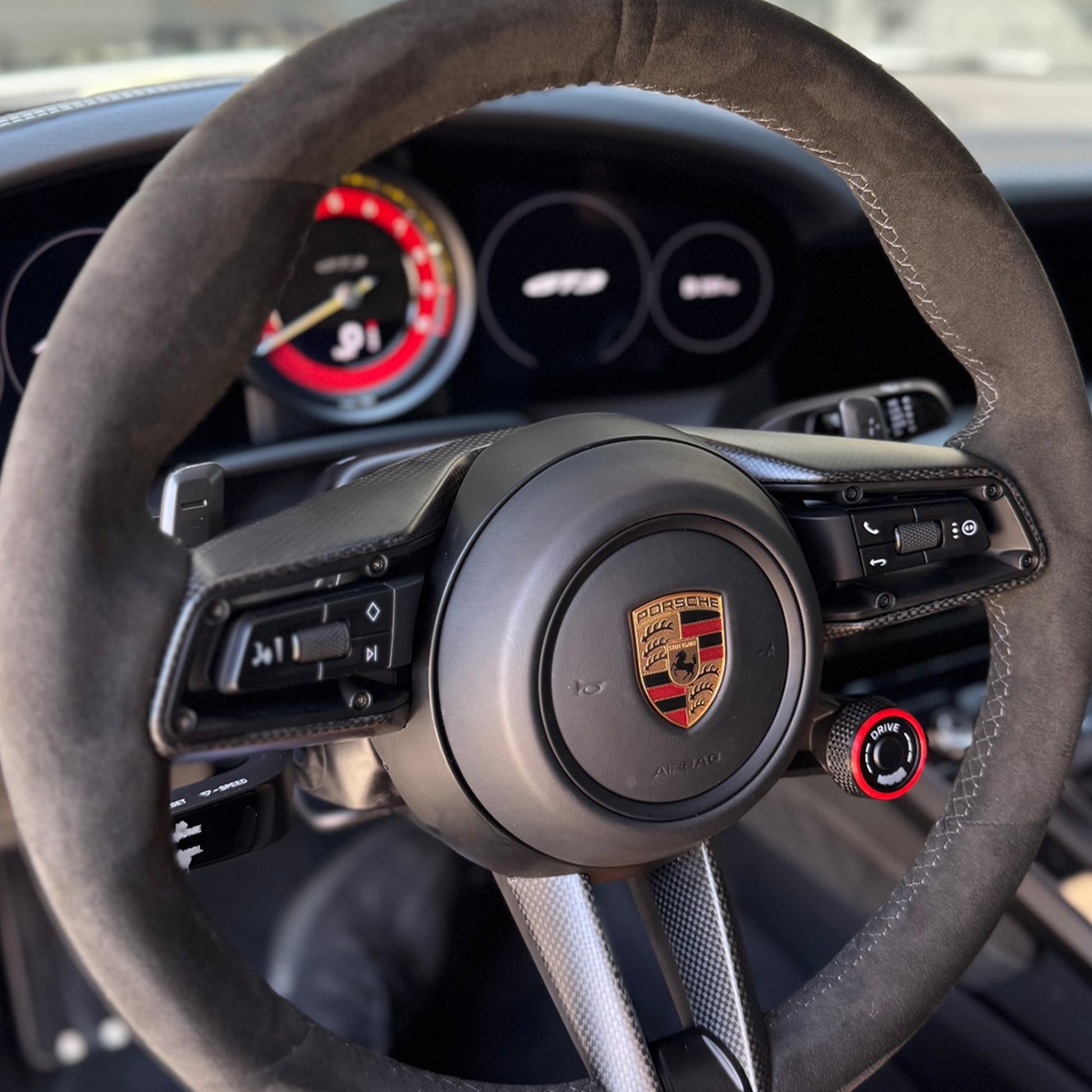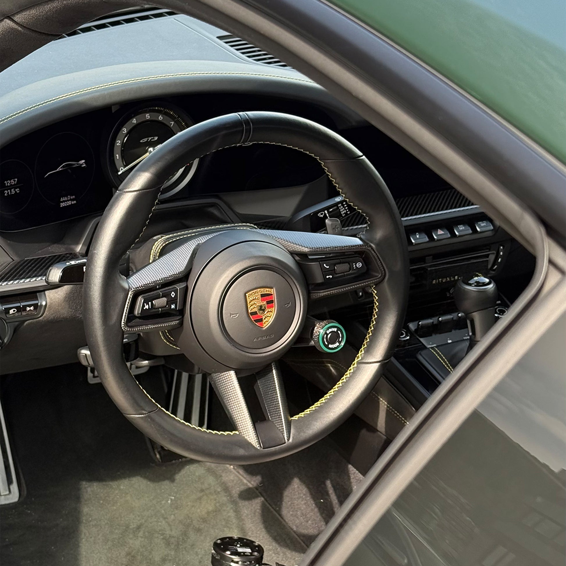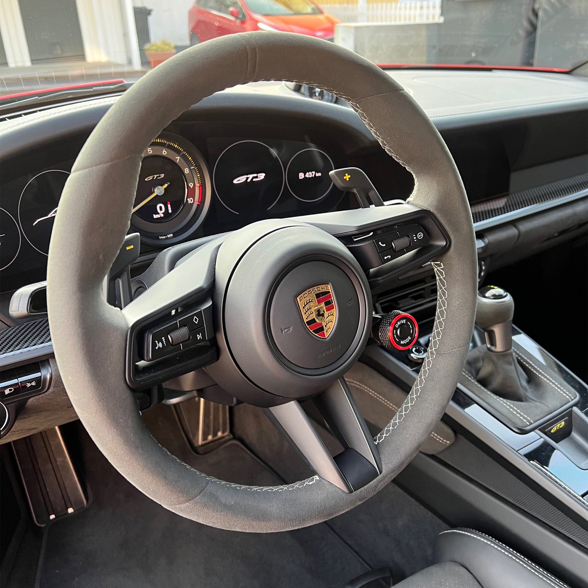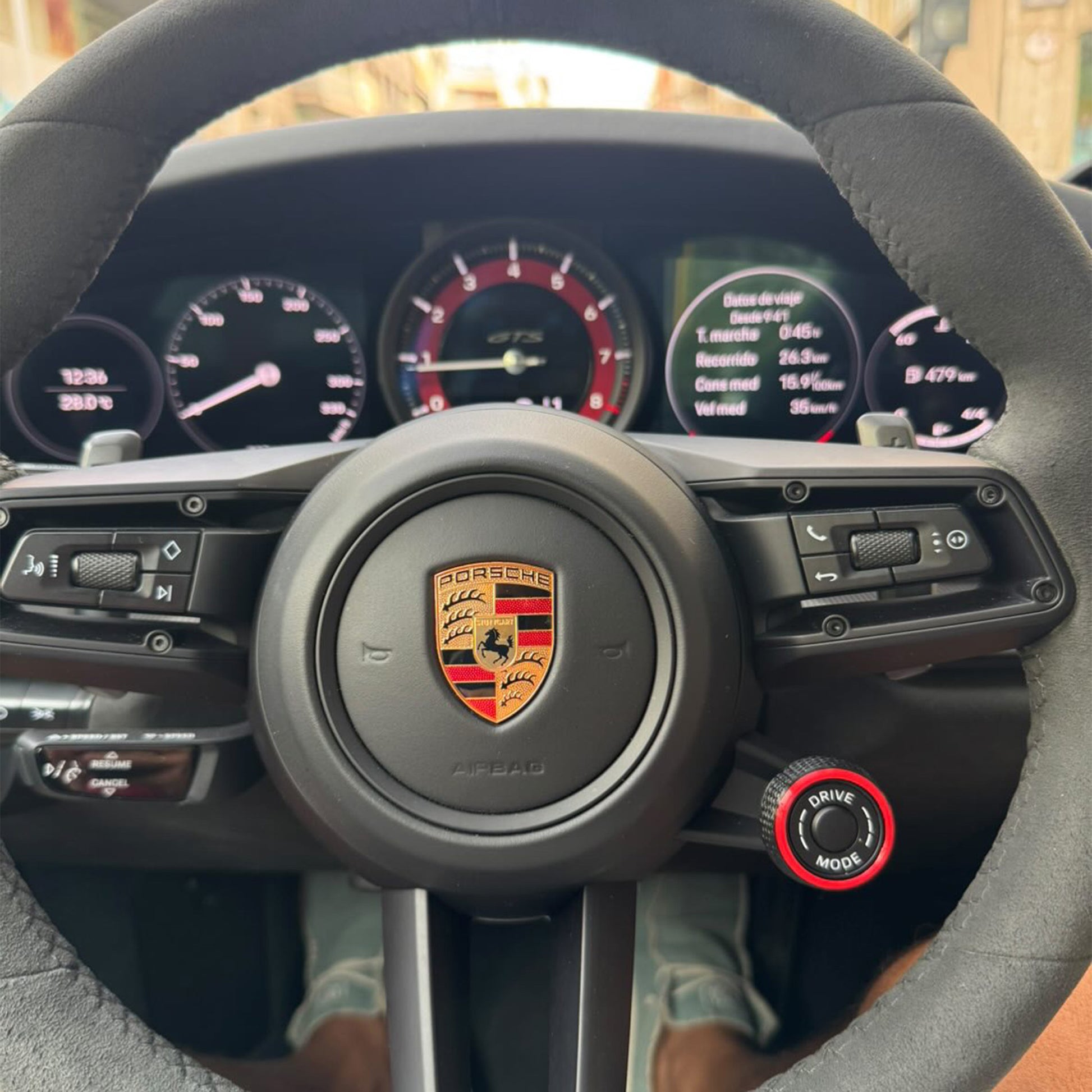 Enhance your driving experience with our custom-made Mode Dial Selector Cover, designed specifically for Porsche enthusiasts. Available in multiple colors to match your stitching, seat belts, or exterior paint, this cover adds a sleek and sporty touch to your interior.